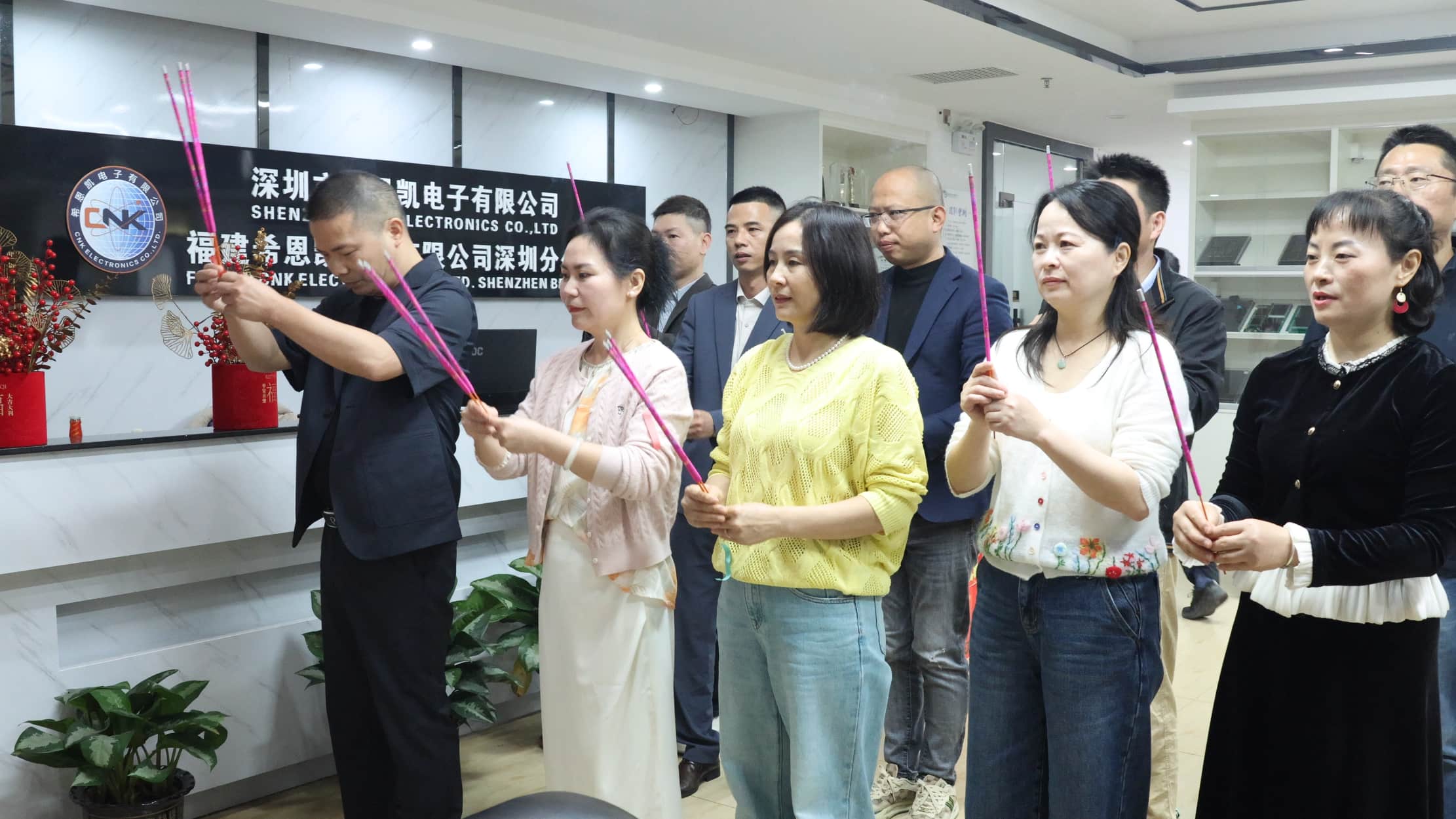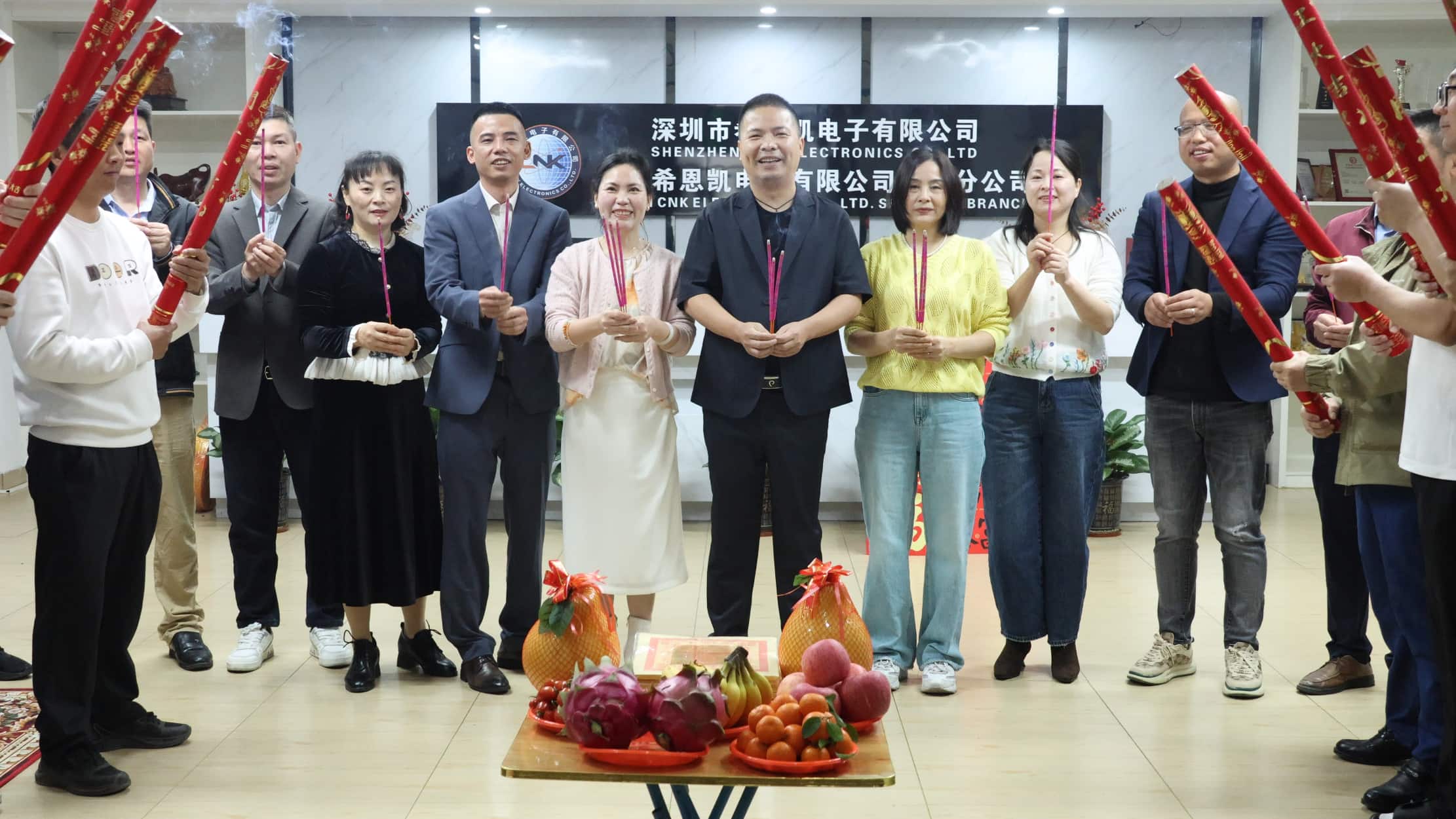 De madrugada, a alta direção da empresa se reuniu e conduziu todos os colaboradores para a solenidade de inauguração. A fumaça do incenso subia das mesas e as oferendas eram abundantes. Isto não só expressou a nossa reverência pelo céu e pela terra, mas também transmitiu os desejos mais sinceros de todos os funcionários por um ano próspero, com clima favorável e negócios tranquilos. Em meio ao incenso, os líderes ofereceram incenso com grande devoção, orando por bênçãos e boa sorte para os grandes planos da empresa no novo ano.